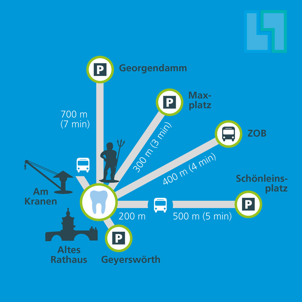 Unsere Praxis ist sehr zentral gelegen, in der Langen Straße, direkt am Eingang der Wallenstein-Passage zwischen Grüner Markt und Obstmarkt.